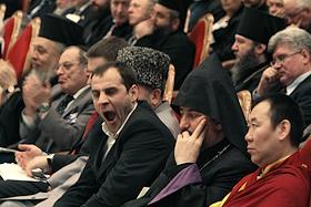 Верховный муфтий России и европейских стран СНГ Талгат Таджуддин (слева) на церемонии открытия XI Всемирного Русского Народного собора в Зале Церковных Соборов Храма Христа Спасителя.