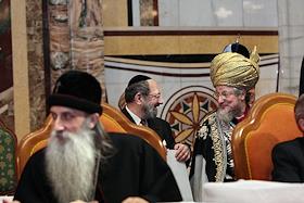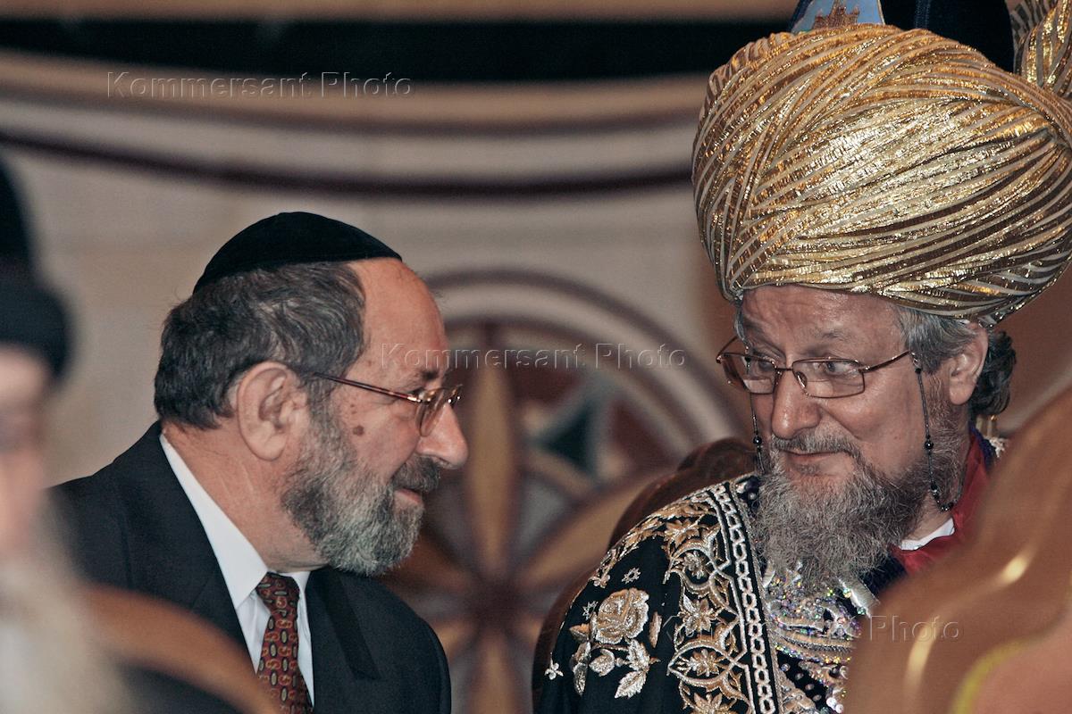 Главный раввин России Адольф Шаевич (слева) и верховный муфтий России и европейских стран СНГ Талгат Таджуддин (справа) на церемонии открытия XI Всемирного Русского Народного собора в Зале Церковных Соборов Храма Христа Спасителя.