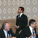 Первый заместитель председателя Правительства России Дмитрий Медведев перед началом межотраслевой конференция "СМИ, книгоиздание, полиграфия: итоги 2006 года и перспективы развития". Конференция прошла в "Президент-отеле".
