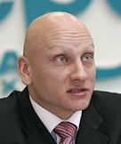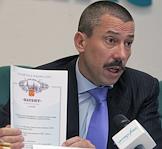 Председатель совета директоров ООО "Рус.Джи Пи Эс" Павел Панов на пресс-конференции, посвященной первым итогам судебного разбирательства по иску, поданному компанией "RussGPS" против компании "Motorola", и встречному иску "Motorola" против "RussGPS". Пресс-конференция прошла в центральном офисе агентства "Интерфакс".