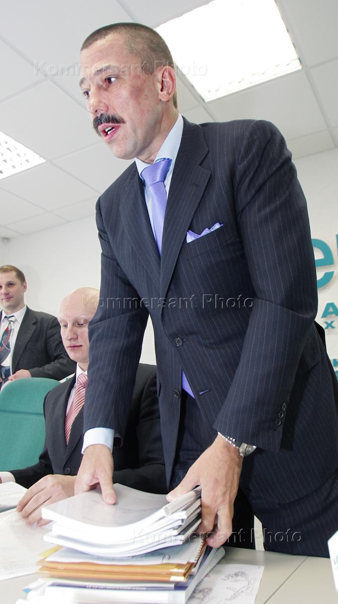 Адвокат Николай Разоренов на пресс-конференции, посвященной первым итогам судебного разбирательства по иску, поданному компанией "RussGPS" против компании "Motorola", и встречному иску "Motorola" против "RussGPS". Пресс-конференция прошла в центральном офисе агентства "Интерфакс".