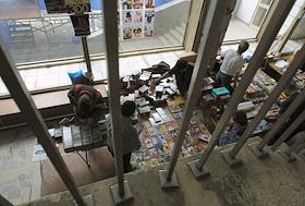 Продавец аудио и видео продукции на новом рынке "Горбушка" в спорткомплексе ЦСКА.