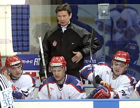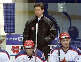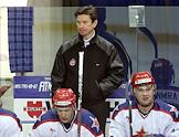 Чемпионат России по хоккею. Главный тренер хоккейной команды "ЦСКА" Вячеслав Быков во время матча "плей-офф" между командами "ЦСКА" (Москва) и "Лада" (Тольятти). Матч прошел в ледовом дворце "ЦСКА".