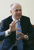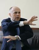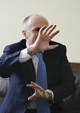 Руководитель Единой телерадиовещательной системы вооруженных сил России Руслан Соколов во время интервью в своем рабочем кабинете.