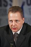Директор Департамента информационных технологий ОАО "Аэропорт" Сергей Кирюшин на пресс-конференции на тему: "О запуске электронного билета с продажей через интерлайн-партнеров. Планы Аэрофлота по выпуску электронных билетов". Пресс-конференция прошла в агентстве "ИТАР-ТАСС".