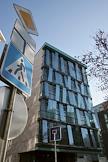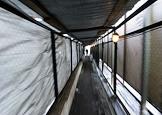 Защитный пешеходный проход рядом со строящимся домом в центре города.