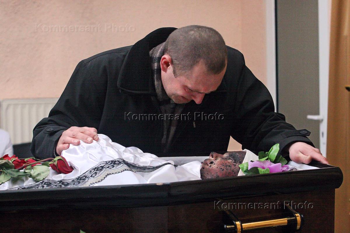 Отпевание в церкви погибших шахтеров после аварии, случившейся 19 марта 2007 года на шахте "Ульяновская". В результете катастрофы погибли 106 шахтеров.