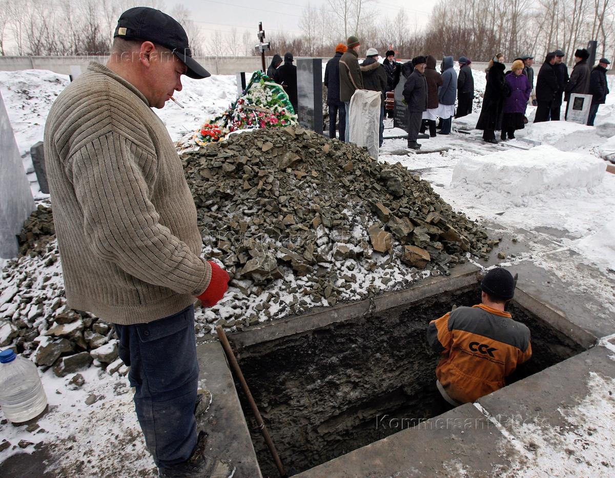 Похороны погибших шахтеров после аварии, случившейся 19 марта 2007 года на шахте "Ульяновская". В результете катастрофы погибли 106 шахтеров.