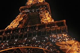 Виды Парижа. Ночное освещение Эйфелевой башни.