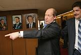 Начальник главного управления Государственной инспекции безопасности дорожного движения (ГИБДД) МВД России, генерал-лейтенант Виктор Кирьянов (слева) после пресс-конференции, посвященной принятию декларации молодежи по безопасности дорожного движения. Пресс-конференция прошла в агентстве "ИТАР-ТАСС".