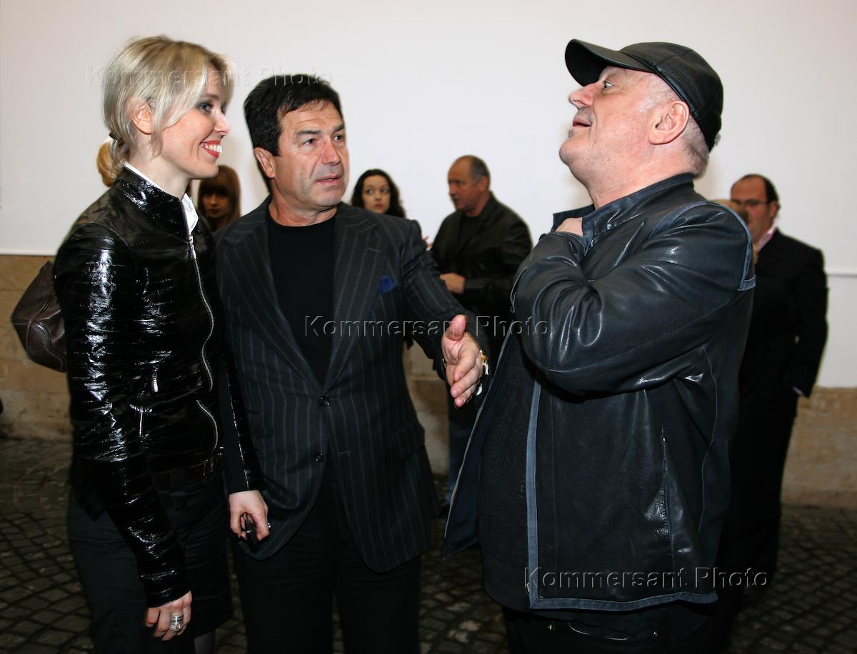 Дизайнер Васса (слева), бизнесмен Анзори Аксентьев-Кикалишвили (в центре) и предприниматель Теймураз Карчава (справа) на церемонии открытия бутика "Chloe" (Хлоэ).