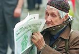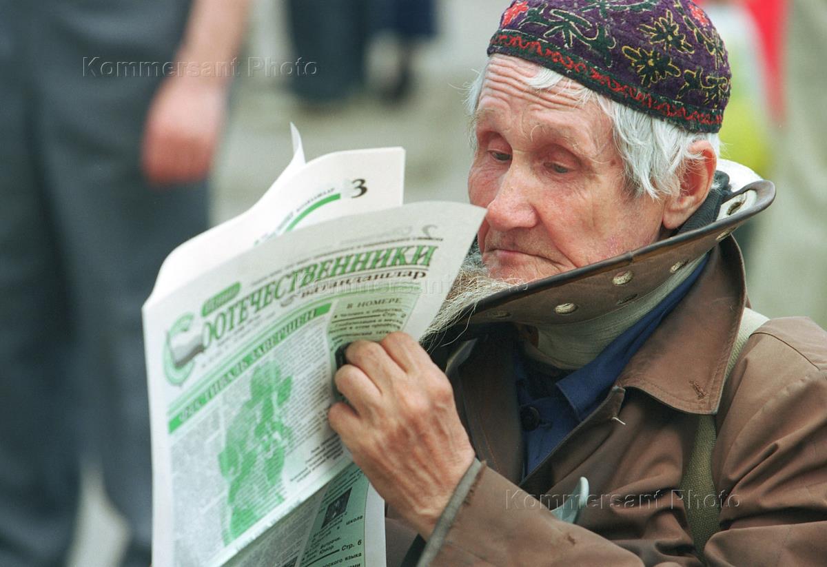 Участник традиционного общегородского татаро-башкирского праздника "Сабантуй" читает газету. Праздник прошел в Измайловском парке.