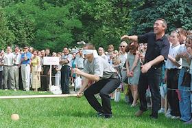 Конкурс "Битье горшков" на традиционном общегородском татаро-башкирском празднике "Сабантуй" в Измайловском парке.