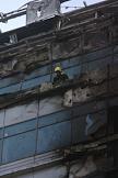 Пожар в бизнес-центре "Дукат-палас" на улице Гашека. Загорелся внутренний утеплитель между обшивкой фасада и капитальной стеной с 8 по 15 этажи, площадь пожара составила 300 кв м. Пострадавших нет.