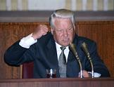 Президент России Борис Ельцин во время совместной пресс-конференции с президентом США Биллом Клинтоном в Кремле.