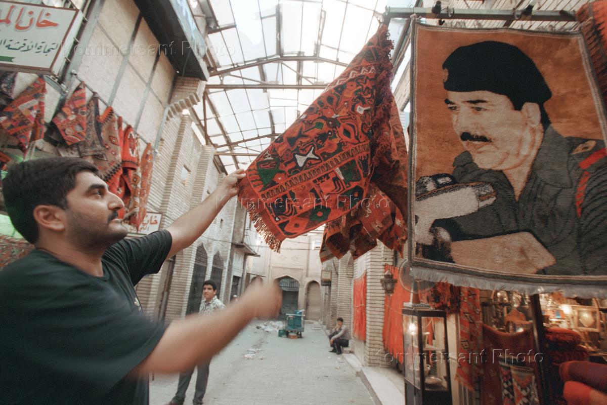 Портрет президента Ирака Саддама Хусейна на ковровых изделиях.