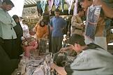 Иракская женщина с ребенком на руках в торговых рядах уличного базара.