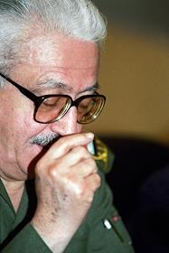 Лидер ЛДПР, заместитель председателя Государственной Думы России Владимир Жириновский курит сигару, во время поездки группы российских депутатов в Ирак.