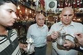 Депутат Государственной Думы России от фракции КПРФ Василий Шандыбин любуется восточной посудой во время поездки группы российских депутатов в Ирак.