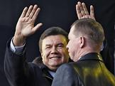 Премьер-министр Украины Виктор Янукович (слева) на митинге сторонников коалиции национального единства на Майдане Незалежности (Площадь Независимости).