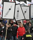 Акция "ВремЯ выбирать ВремЯ", организованная движением "Молодая гвардия Единой России", прошла на Воробьевых горах. Плакаты "Беспорядок сыграет в ящик!" и "Пусть всегда буду я!".