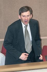 Председатель Федерации независимых профсоюзов России Михаил Шмаков во время обсуждения проектов Трудового кодекса (КЗоТ) на очередном заседании Государственной Думы.