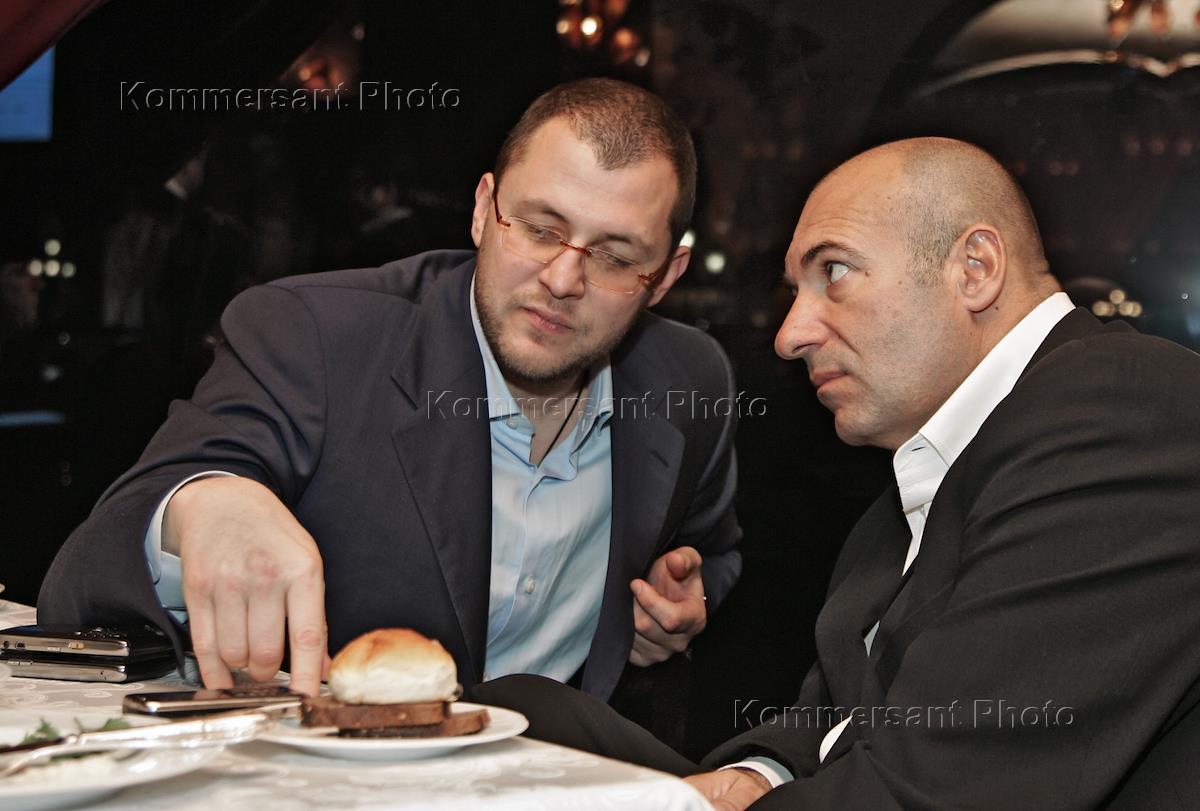 Глава компании "ДОН-Строй" Дмитрий Зеленов (слева) и композитор Игорь Крутой (слева) на праздновании еврейской Пасхи - Пейсах в клубе "VIP Националь".