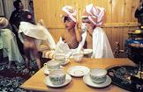 Воспитанники школы - интерната с углубленным изучением французского языка пьют чай после бани.