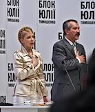 Народный депутат Украины, лидер фракции "Блока Юлии Тимошеко" (БЮТ) Юлия Тимошенко (слева) во время съезда "БЮТ".