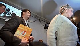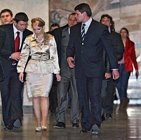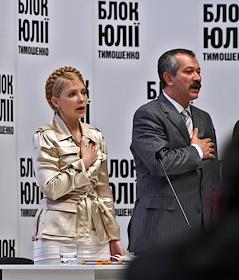 Народный депутат Украины, лидер фракции БЮТ Юлия Тимошенко (слева) во время съезда "Блока Юлии Тимошеко".