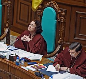 Заместитель председателя Конституционного суда Украины (КСУ) Сюзанна Станик (слева) во время заседания КСУ.