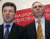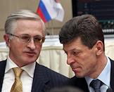 Полномочный представитель Президента России в Южном Федеральном округе (ЮФО) Дмитрий Козак (слева) и президент Российского союза промышленников и предпринимателей (РСПП) Александр Шохин (справа) на I Ежегодной конференции Национальной ассоциации агентств инвестиций и развития. Конференция прошла в гостинице "Савой".