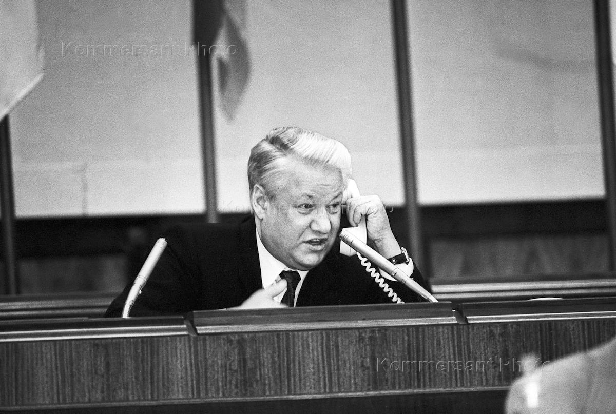 Президент России Борис Ельцин во время заседания Верховного Совета России.