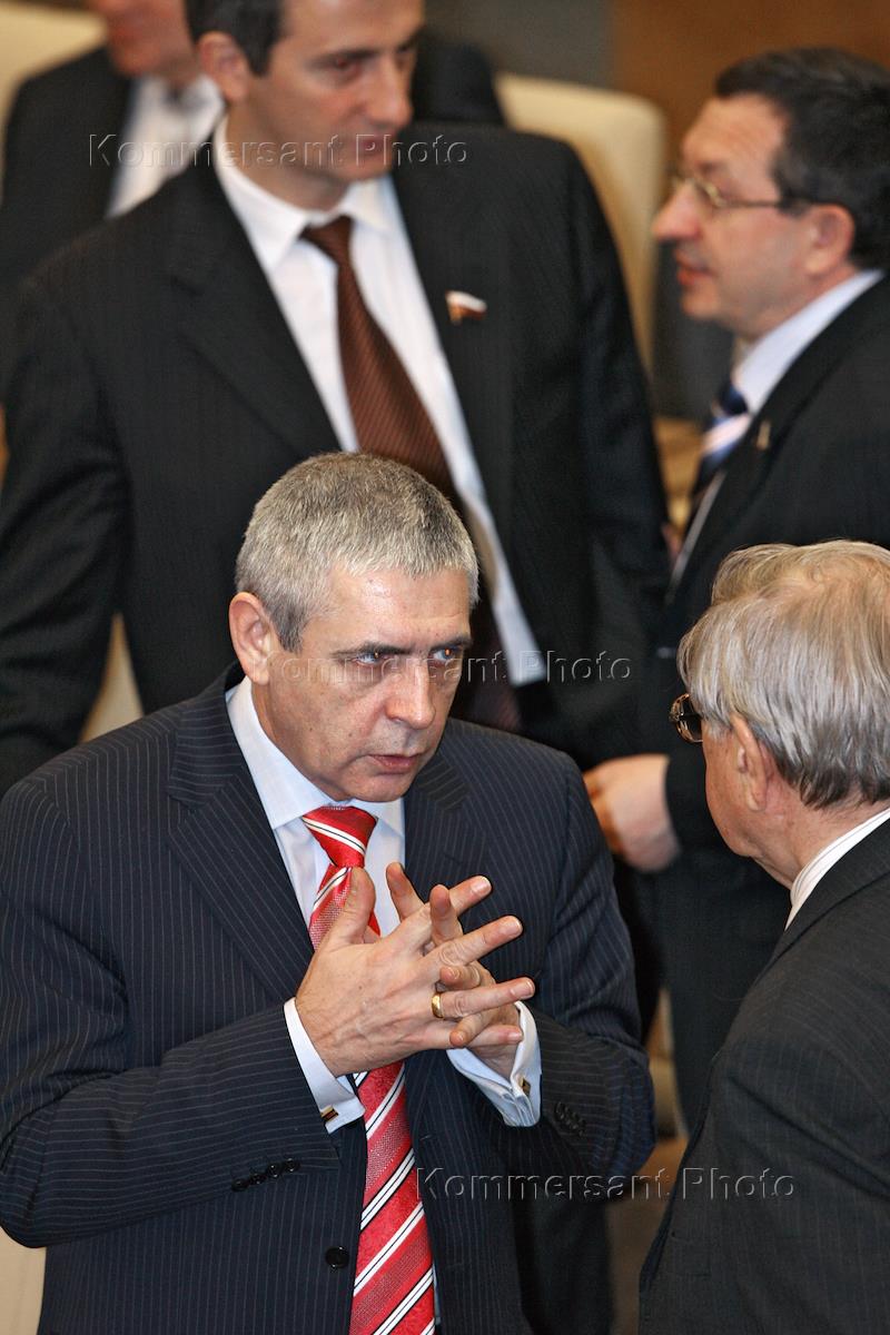 Заместитель председателя Комитета Государственной Думы России по гражданскому, уголовному, арбитражному и процессуальному законодательству Владимир Груздев (слева) на заседании Госдумы.