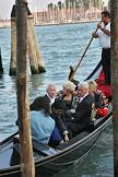Фестиваль искусств "Черешневый лес". Генеральный директор издательства "Музыка" Марк Зильберквит (второй слева), представитель в Совете Федерации (СФ) России от Великого Хурала Республики Тыва Людмила Нарусова (в центре) и председатель совета директоров ОАО "Торговый Дом ГУМ" Вячеслав Вечканов (справа) едут на лодке перед началом дружеского ужина "A-la veneziana".