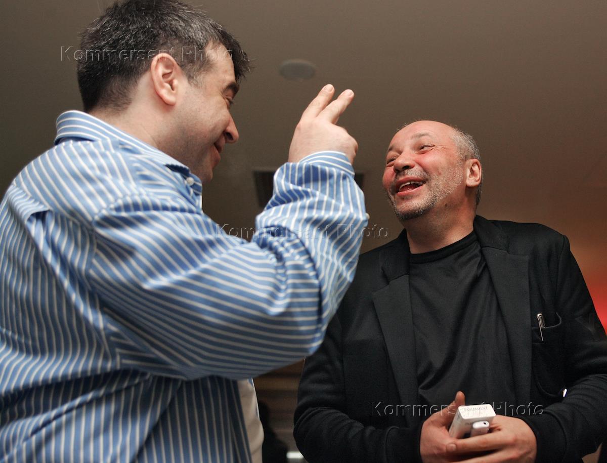 Актер Михаил Дорожкин (слева) и главный редактор газеты "КоммерсантЪ" Андрей Васильев (в центре) на премьерном показе фильма "Неваляшка" в кинотеатре "Октябрь".