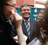 Руководитель Федеральной службы по финансовым рынкам России Олег Вьюгин во время брифинга на тему: "Российский финансовый рынок: итоги 2006 - перспективы 2007". Брифинг прошел в Галерее искусств Зураба Церетели.