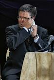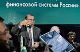 Президент Ассоциации Банков Центральной России Гарегин Тосунян (на экране) во время брифинга на тему: "Российский финансовый рынок: итоги 2006 - перспективы 2007". Брифинг прошел в Галерее искусств Зураба Церетели. Приз "Финансовый Олиимп".