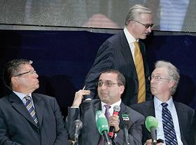 Президент Ассоциации Банков России Гарегин Тосунян (второй слева) во время брифинга на тему: "Российский финансовый рынок: итоги 2006 - перспективы 2007". Брифинг прошел в Галерее искусств Зураба Церетели.
