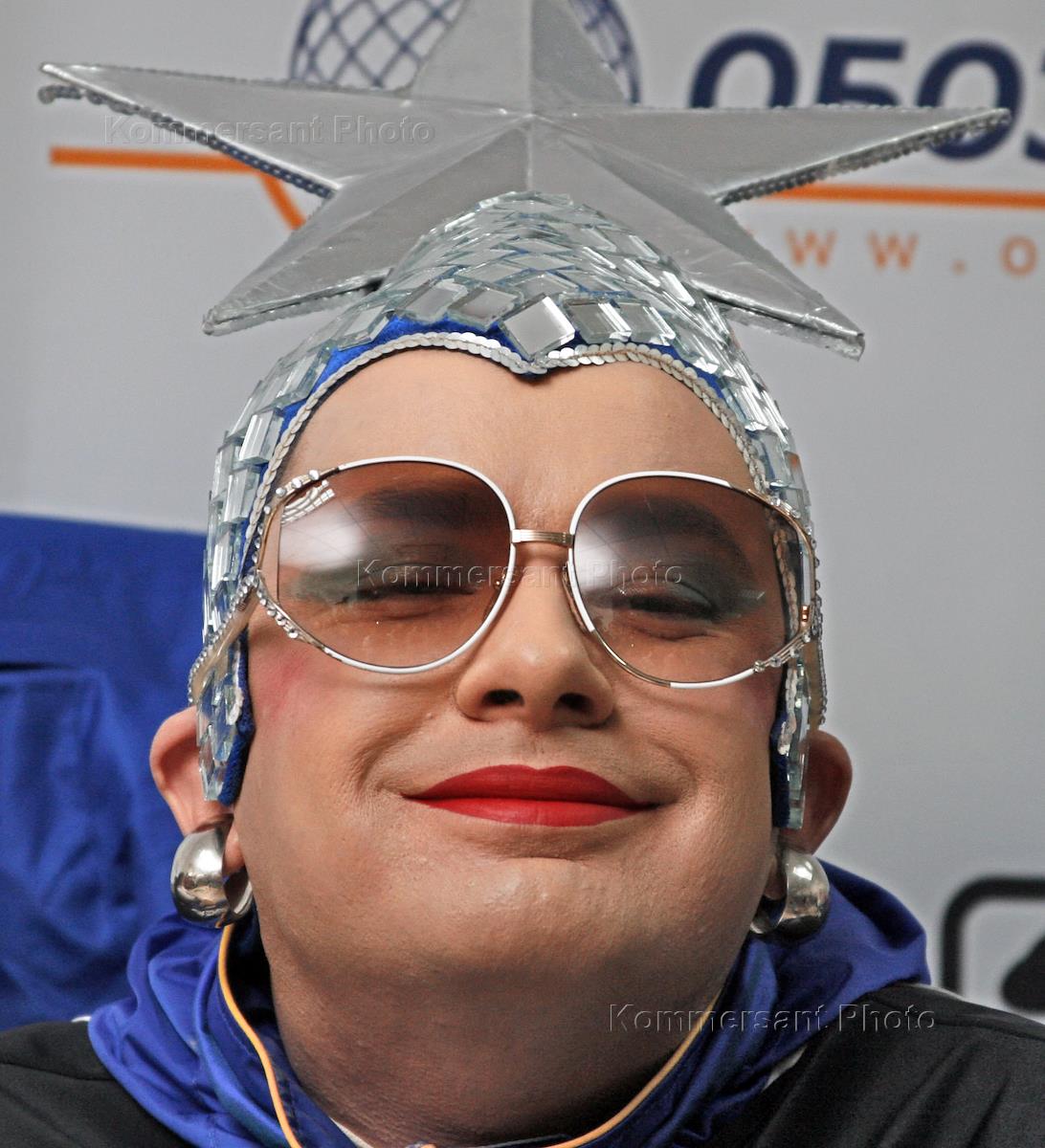 Артист Андрей Данилко (сценический псевдоним Верка Сердючка) во время пресс-конференции, посвященной его участию в конкурсе "Евровидение - 2007".
