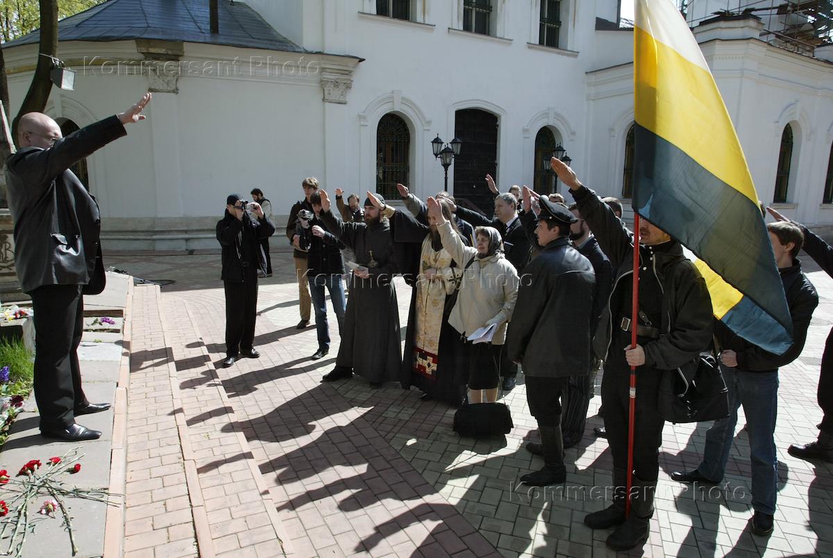 На территории храма всех Святых возле станции метро "Сокол" разрушена памятная плита, установленная в честь нескольких генералов, которые воевали в Белой армии. Акция националистов на территории храма.