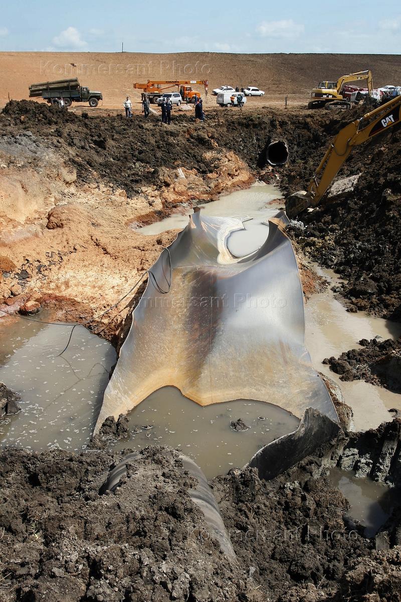Работы по ликвидации аварии на транзитном газопроводе Уренгой-Помары-Ужгород на участке, расположенном вблизи села Лука Киевской области. 7 мая вблизи села Лука Киевской области на магистральном газопроводе Уренгой-Помары-Ужгород произошел взрыв газа с последующим горением, в результате чего повреждено 30 метров транспортной магистральной трубы. От газоснабжения отключены райцентр Тараща и 33 населенных пункта - всего 12610 абонентов.