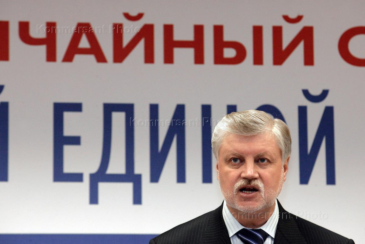 Руководитель партии "Справедливая Россия", председатель Совета Федерации России Сергей Миронов на чрезвычайном съезде Социалистической единой партии России (СЕПР). На съезде было принято решение, что Социалистическая единая партия России самоликвидируется, а ее члены войдут в состав партии "Справедливая Россия".