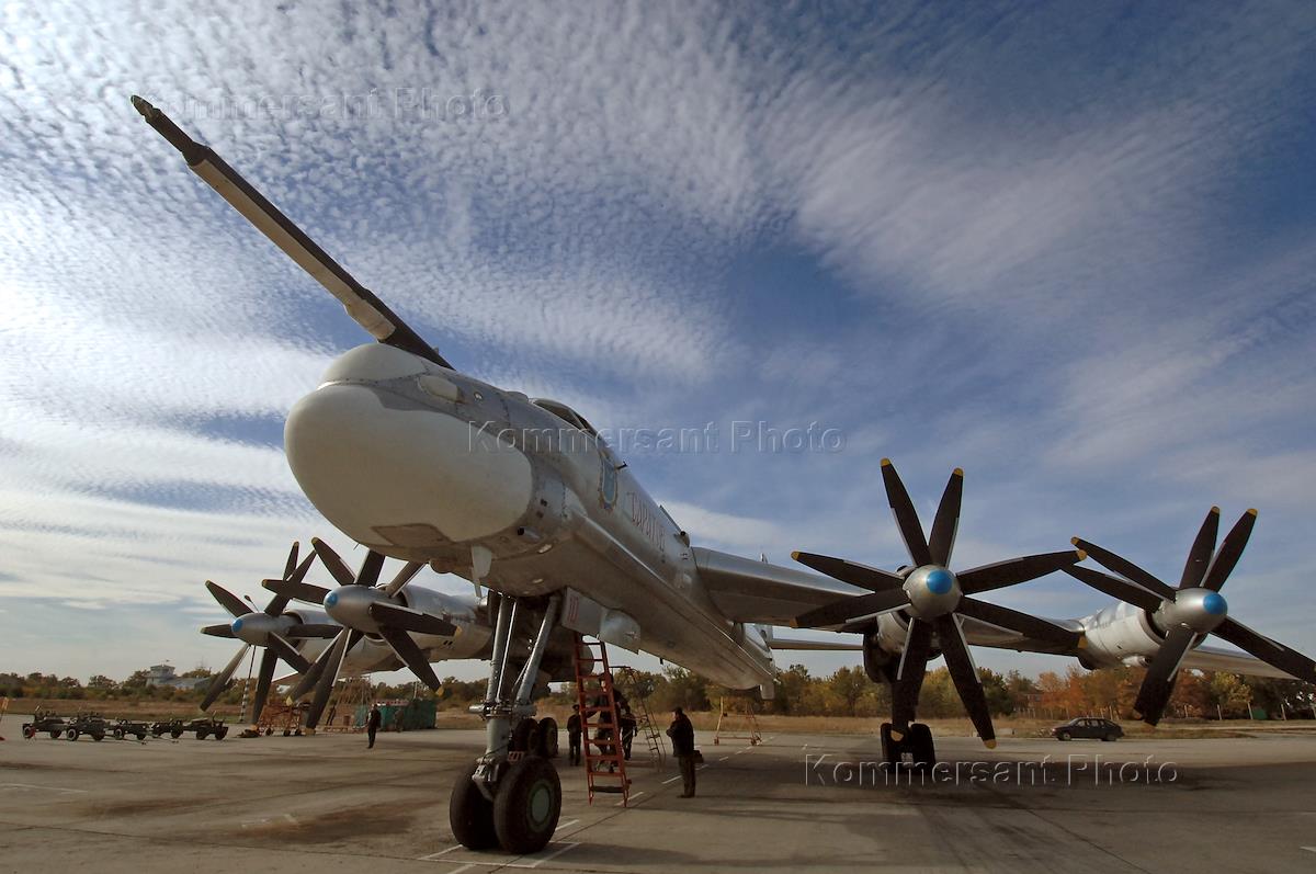 Командно-штабные учения Дальней авиации прошли на авиабазе города Энгельс. Стратегический бомбардировщик "Павел Таран".