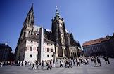 Путешествие по Чехии. Прага. Представители разных религиозных конфессий у входа в Пражский кафедральный Собор святого Вита.