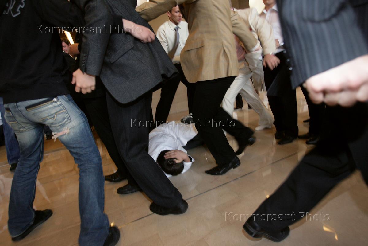 Fight between members of Young Russia youth movement and security guard of People's Democratic Union meeting in Kosmos hotel.