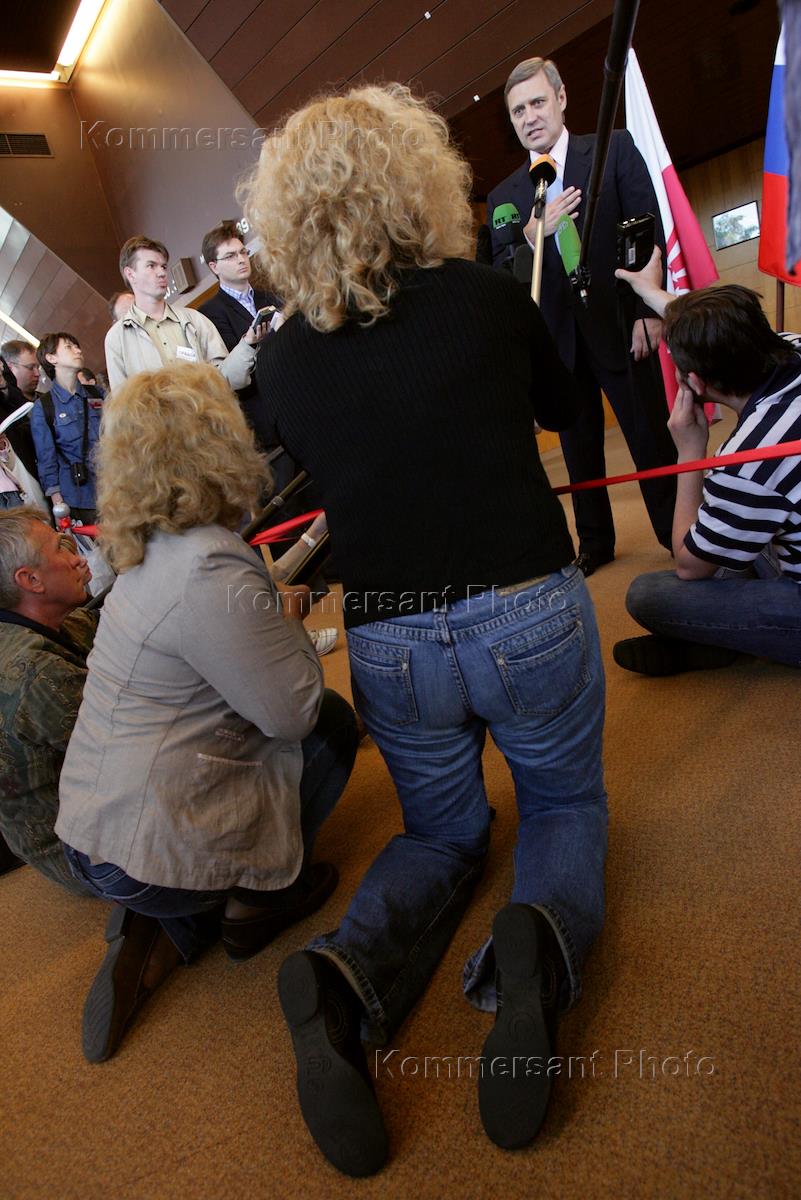 Лидер движения "Народно-демократический союз" (НДС) Михаил Касьянов во время заседания съезда движения "Российский народно-демократический союз". Заседание прошло в гостинице "Космос".