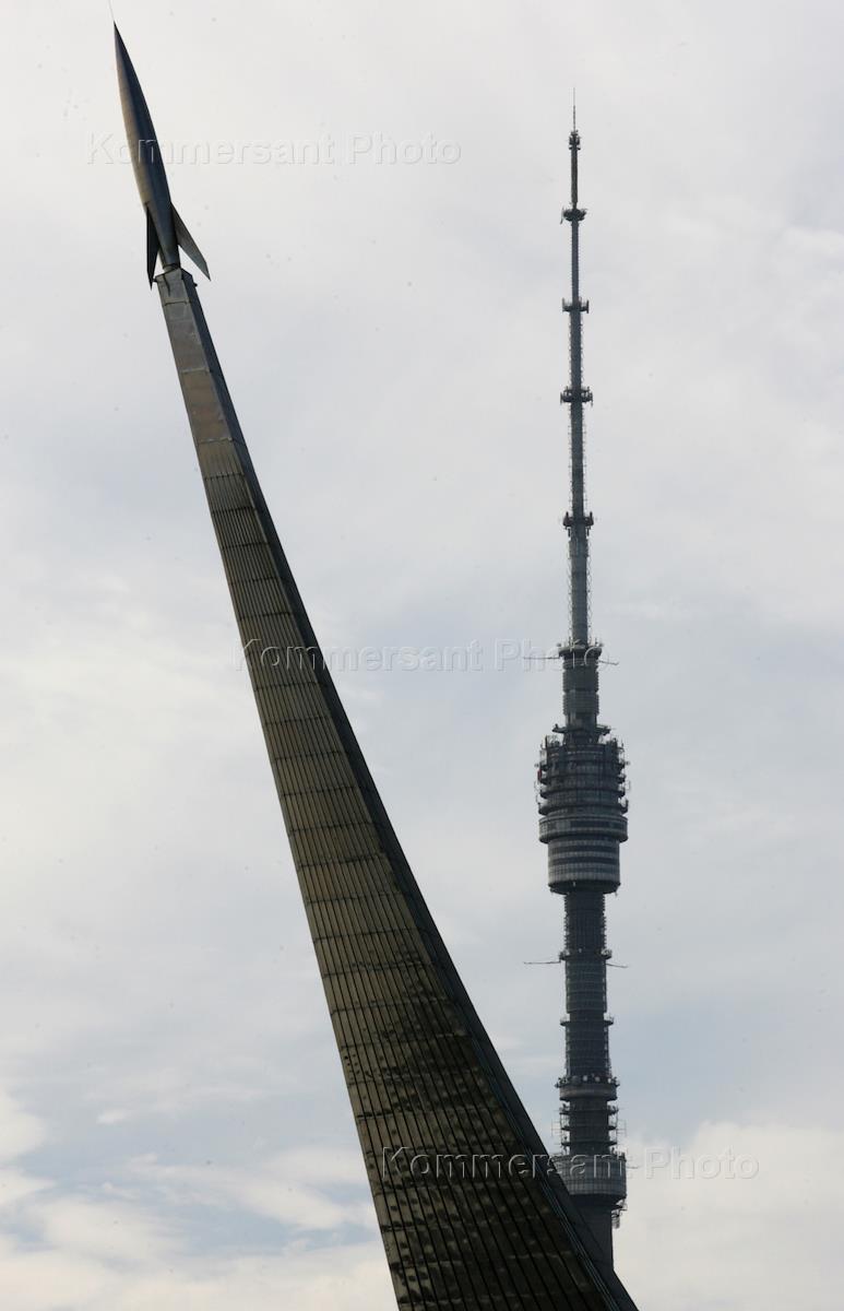Останкинская телевизионная башня и памятник Покорителям космоса.