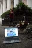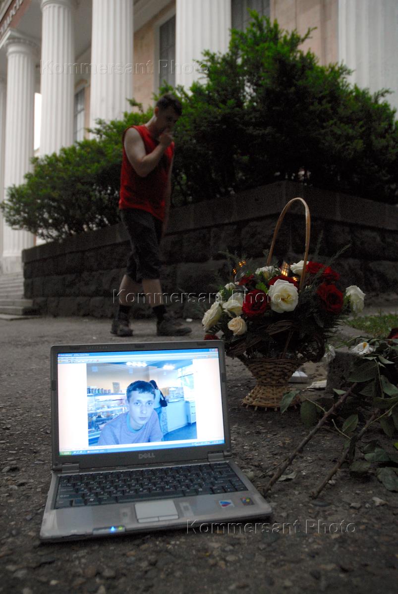 Траур по двум студентам Ставропольского госуниверситета Павлу Чадину и Дмитрию Блохину, убитым у входа государственную медицинскую академию. Фотография Чагина на мониторе ноутбука.