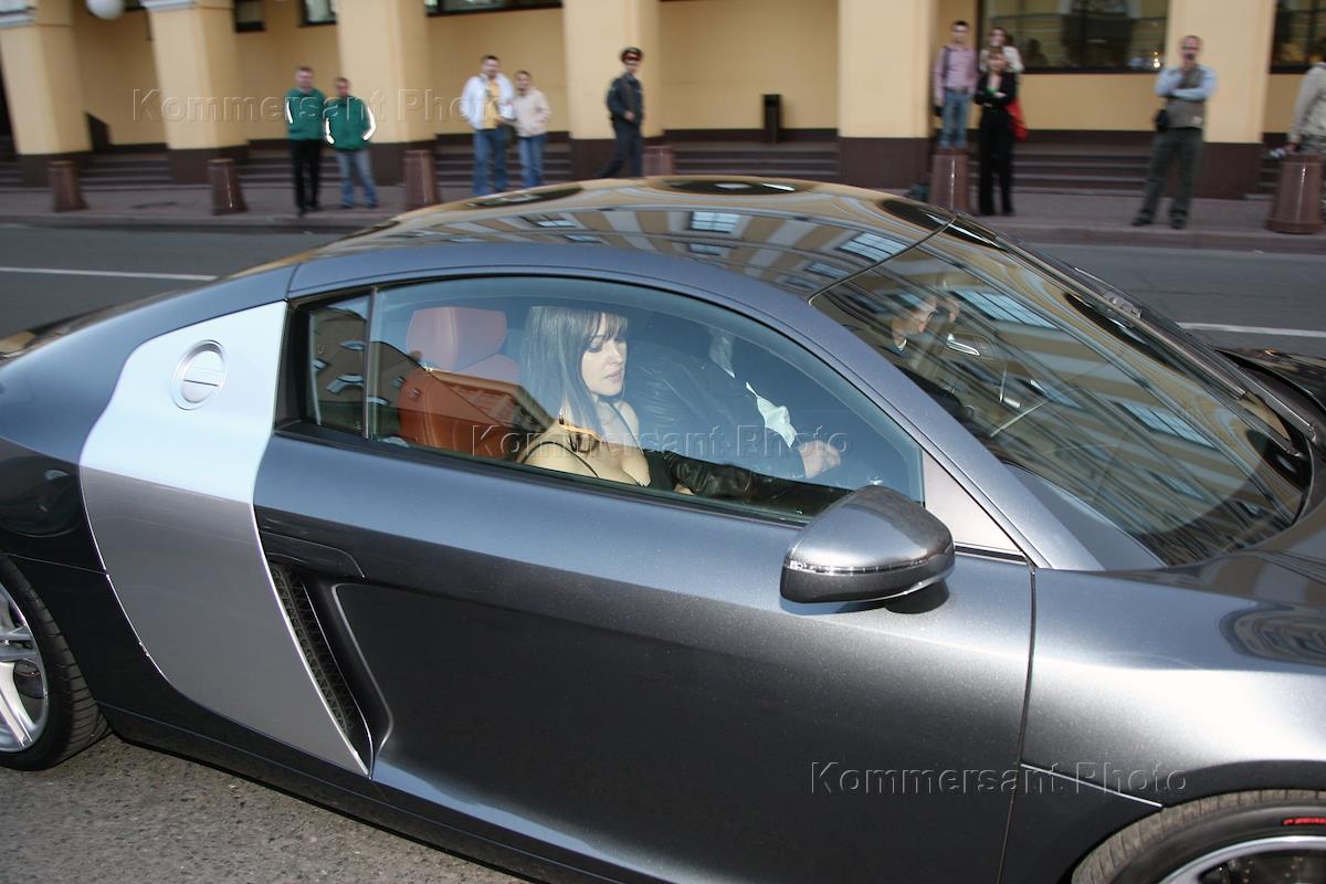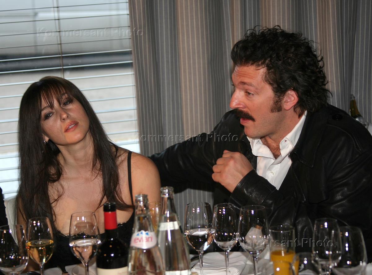 Актеры Моника Беллуччи (слева) и Венсан Кассель (справа) во время презентации новой модели автомобиля суперкар "Audi R8" в "GQ-Bar".